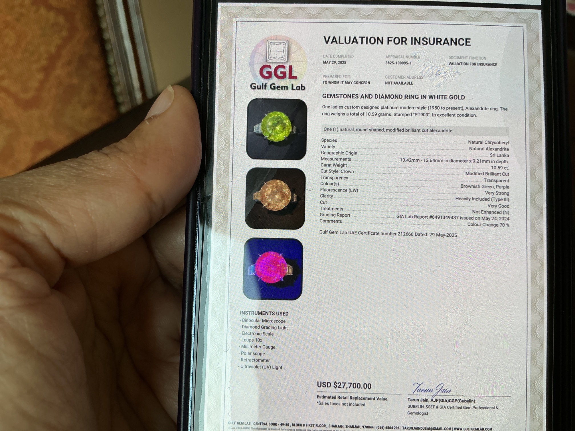 I havnt had it valued . I’m in Dubai and have no idea how and where to do it . I’ve been thinking about sending it to gubelin for one more certificate and they do rate gemstones . I’d definitely like to insure it and maybe even sell it. I just don’t know where to start . Any suggestions I’d be grateful.