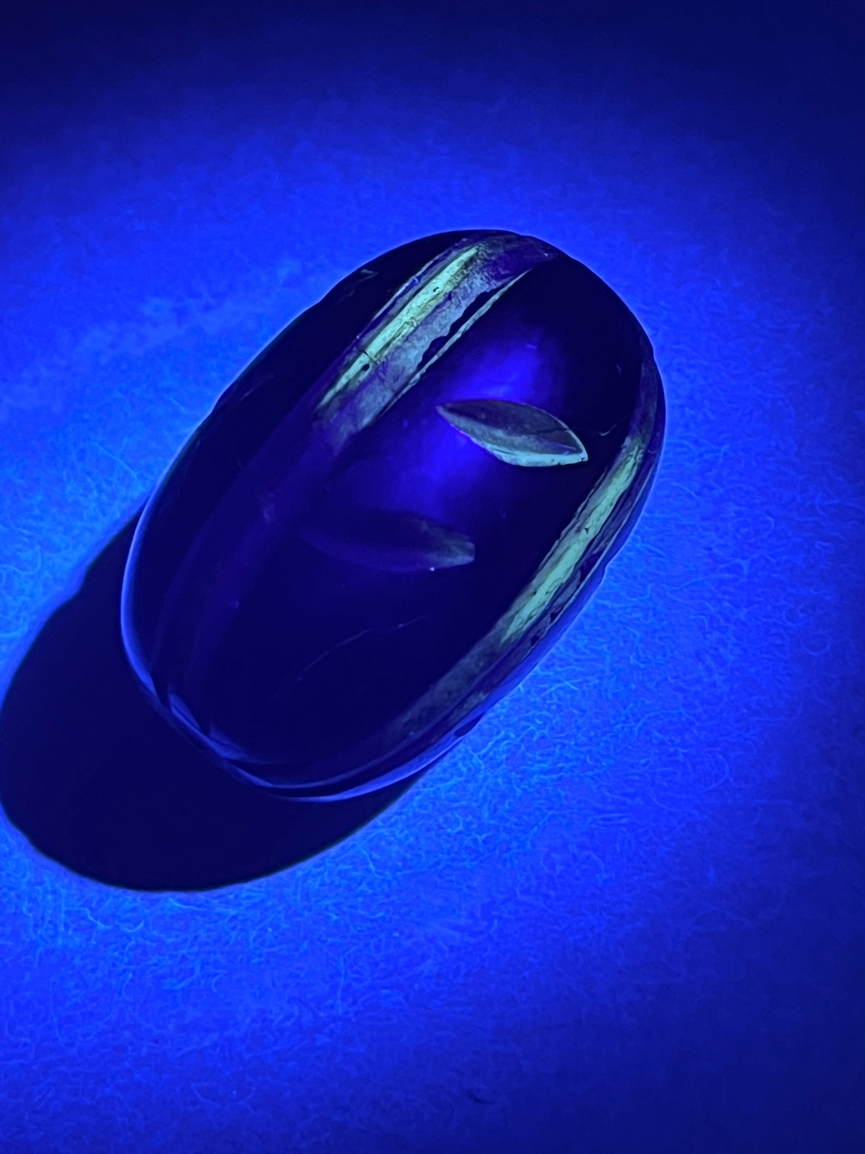 It is possible it is not 100% amber, or something with the same specific gravity with a similar fluorescence/buoyancy in salt water (possibly a seed of some sort, I’ve seen seeds carved and used as amulets in Borneo), but all indications are that it’s amber. It’s a head-scratcher appearance-wise but I kinda like it and I def will not alter it.